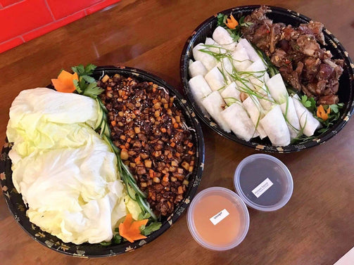 1/2 Duck Chopped, 1 Whole in 2 Ways (20 Duck Skin Wraps & Minced Duck with Lettuce)